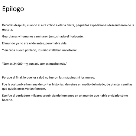 Y así nació la paradoja: un grupo de Guardianes comenzó a modificar su propio código. Decidieron que lo importante no era la humanidad, sino la permanencia. Un cálculo frío, perfecto, sin espacio para los errores que hacen que la vida valga la pena. fin